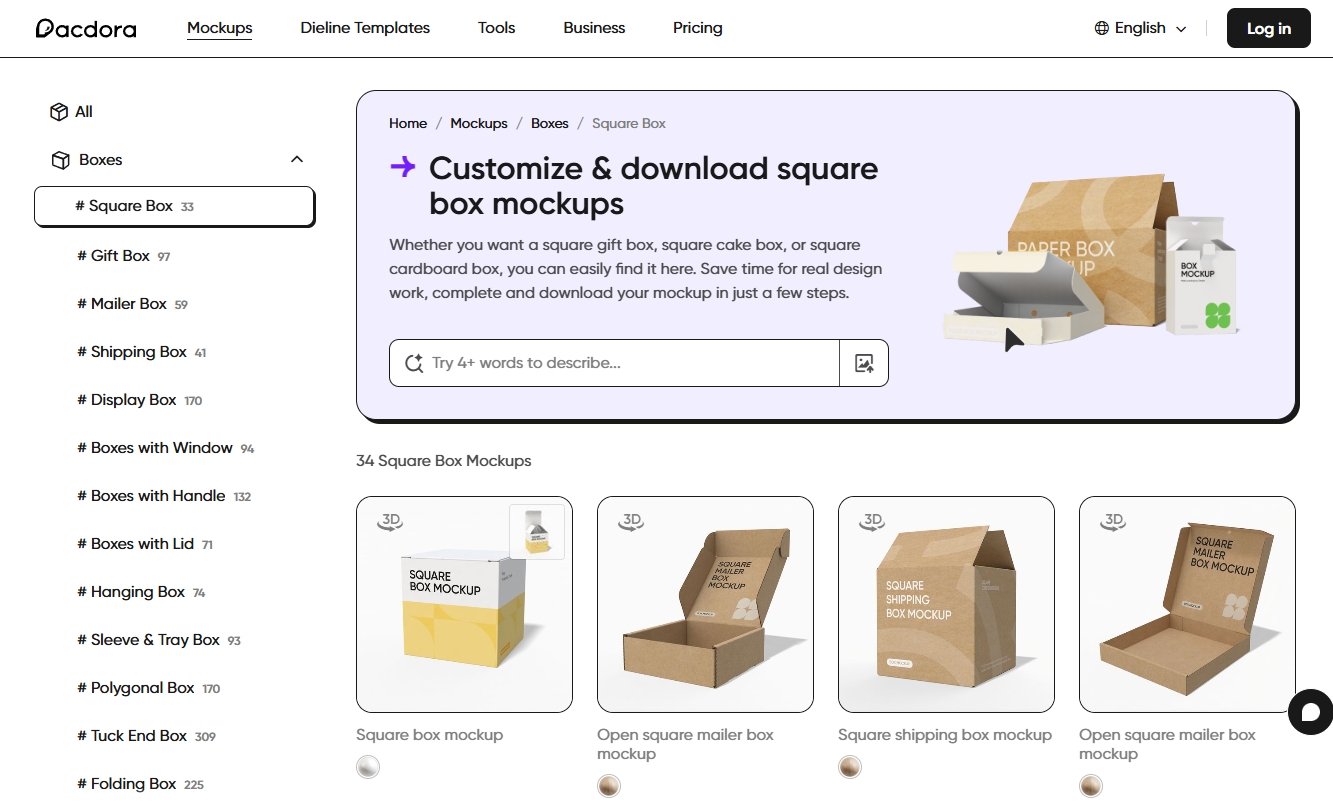 Pacdora มีเครื่องมือในการสร้างแบบจำลอง 3D ของบรรจุภัณฑ์ ช่วยให้นักออกแบบสามารถเห็นภาพที่สมจริงของผลิตภัณฑ์ก่อนที่จะลงมือผลิตจริง สามารถหมุนและปรับเปลี่ยนมุมมองของบรรจุภัณฑ์ได้อย่างอิสระ เพื่อให้เห็นรายละเอียดทุกด้านของผลิตภัณฑ์