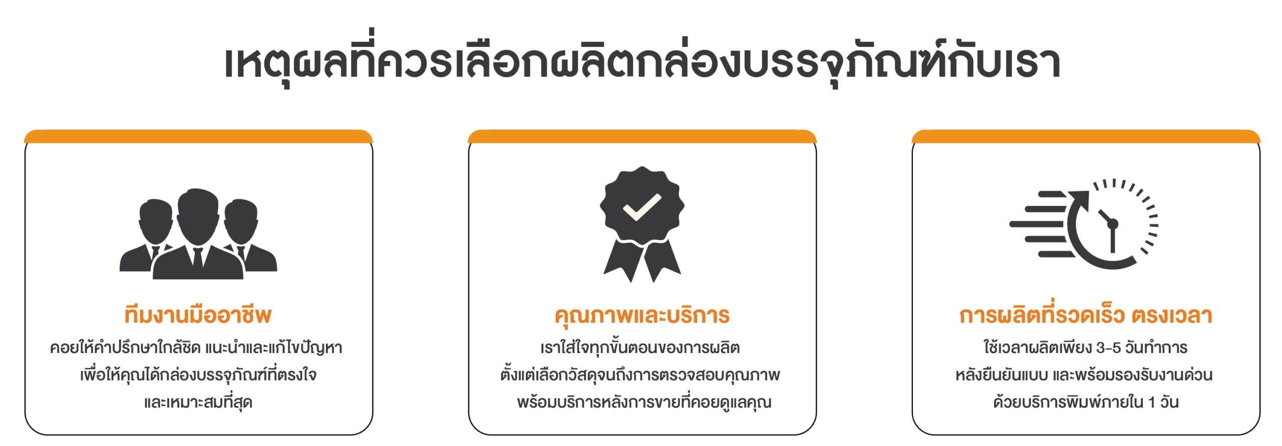 3. ระยะเวลาการผลิต หากเป็นงานกล่องด่วน ใช้เวลาผลิตภายใน 1 วันทำการ* หลังจากลูกค้ายืนยันความถูกต้องของแบบพิมพ์